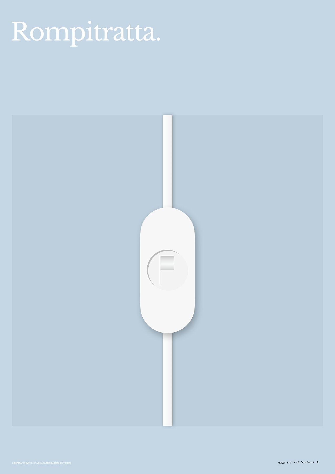 An interpretation of the "Rompitratta" lamp switch by Achille and Pier Giacomo Castiglioni.